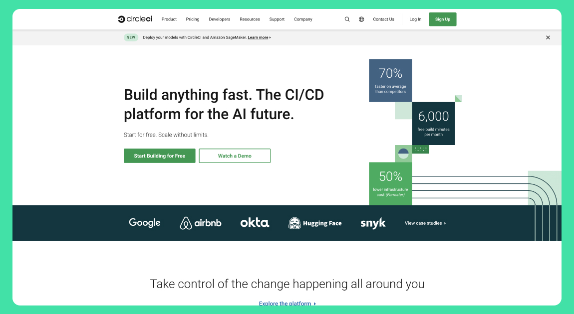 Intelligent orchestration – Uses AI to optimize the build process, intelligently caching dependencies and predicting best test-splitting strategies to minimize build times while ensuring thorough testing.
