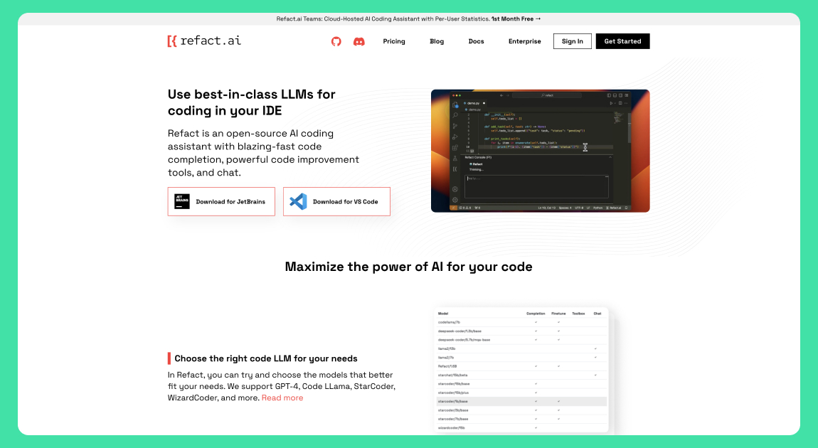 Local and cloud models – Offers a unique dual-model approach where developers can choose between cloud-based models for the most up-to-date intelligence and local models for privacy-sensitive projects.