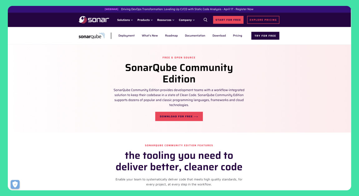 Continuous inspection – Offers a continuous inspection service that integrates with CI/CD workflows, automatically scanning code for bugs, code smells, and security vulnerabilities with each push to the repository.