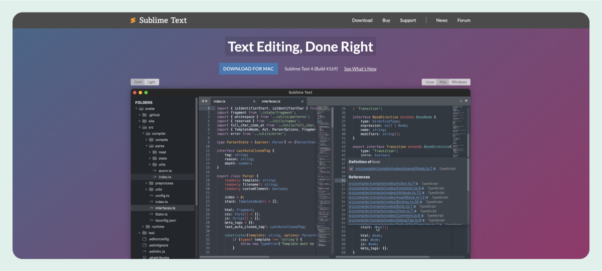 The Sublime Text editor is well known for its lightning-fast performance. Its minimalist interface ensures a distraction-free coding experience, allowing users to focus on the task at hand.