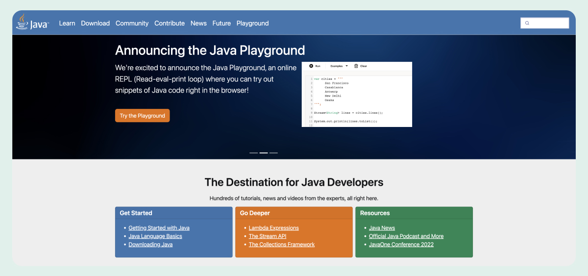Java is a versatile, object-oriented language widely used in enterprise environments. The Java Virtual Machine (JVM) allows Java programs to be compiled into bytecode, which can be executed on any platform that supports the JVM. Because of that, Java applications are highly portable and compatible across different systems. It’s a staple in large-scale systems and applications requiring robust performance and security. Popular uses include: