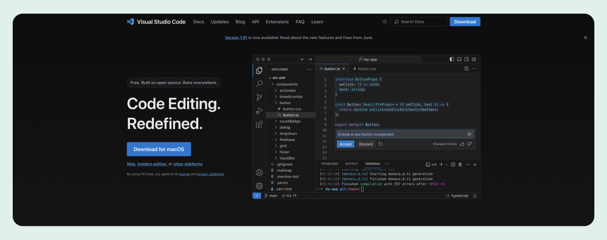 Visual Studio Code: A versatile editor with numerous extensions for various programming languages, which can be easily installed from its marketplace. Features like IntelliSense for code completion, debugging tools, and integrated Git support make VSCode a powerful tool regardless of your experience.