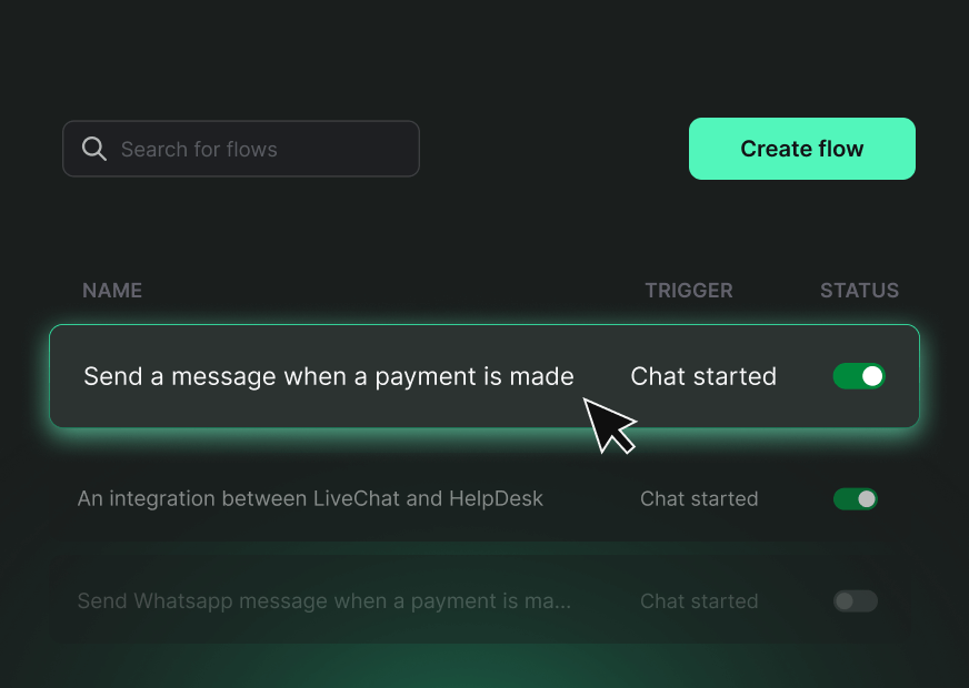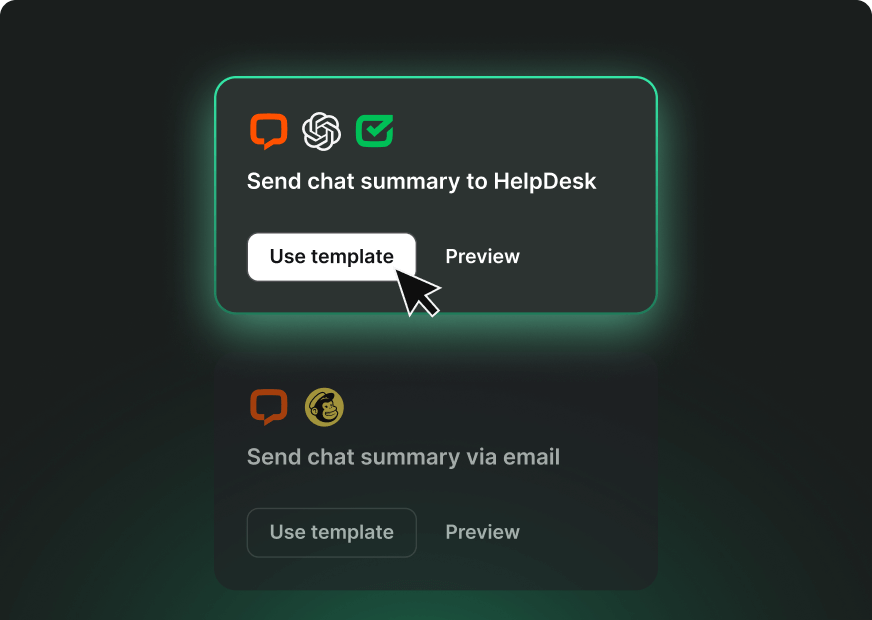 Keep customers updated with automatic chat follow-up emails. Configure all of your email flows once to always enjoy that extra touch in customer communication.