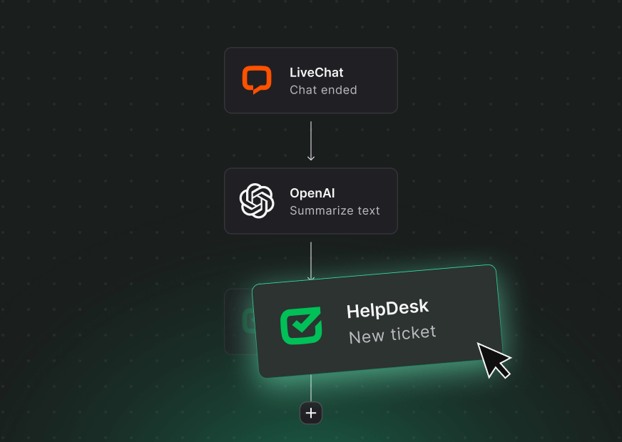 Replace all complex customization that had to be done in external tools with pre-made integrations you configure in the Workflows interface.